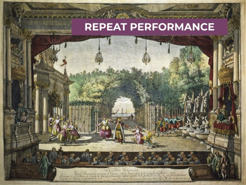 Painting by Bernardo Bellotto (1720–1780): Le Turc généreux, a ballet from Rameau’s Les Indes galantes, exhibited at the Burgtheater in Vienna.
