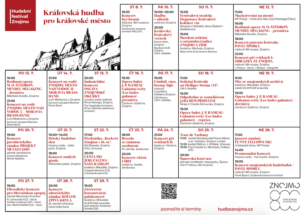 Chcete mít celý program na jednom místě? Vydali jsme "save the date" kartu! Hudební festival Znojmo ve svém 22. ročníku vydal list, na kterém shrnul všechny akce festivalu. Budete si také kroužkovat akce, které se vám líbí? Stáhněte si kompletní program.